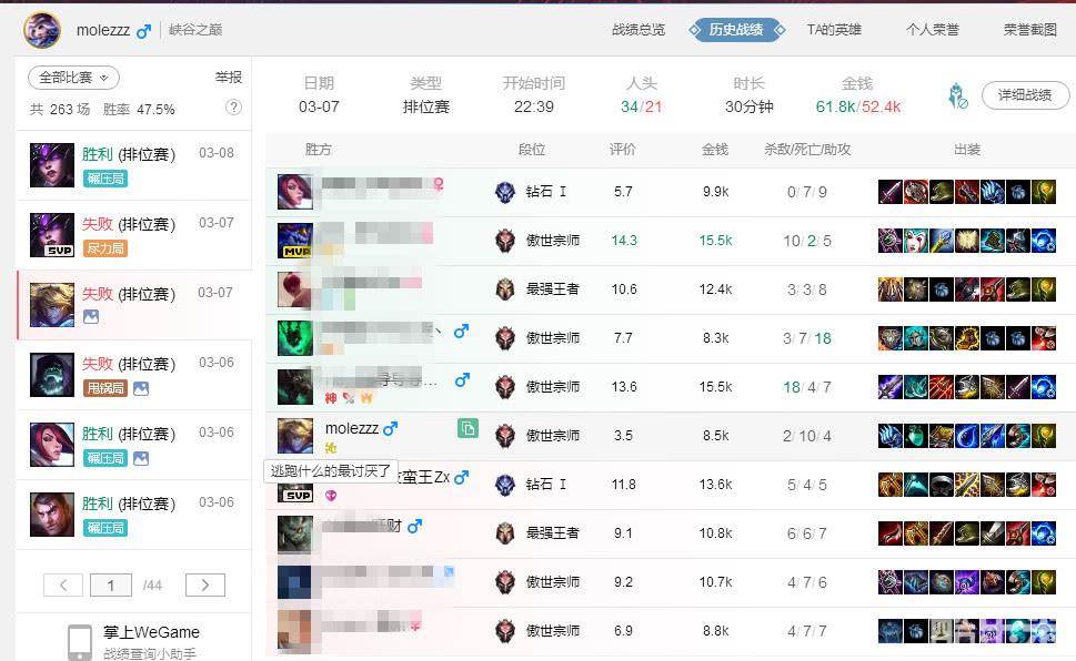 如果Mole战绩能好看点,那相信队友们都能理解他,输一场排位没什么大不了的。但Mole不听指挥狂送人头超了鬼,最后直接挂机,连句道歉都不说,这才把队友给惹毛了,因此玩家才要举报他挂机送人头。