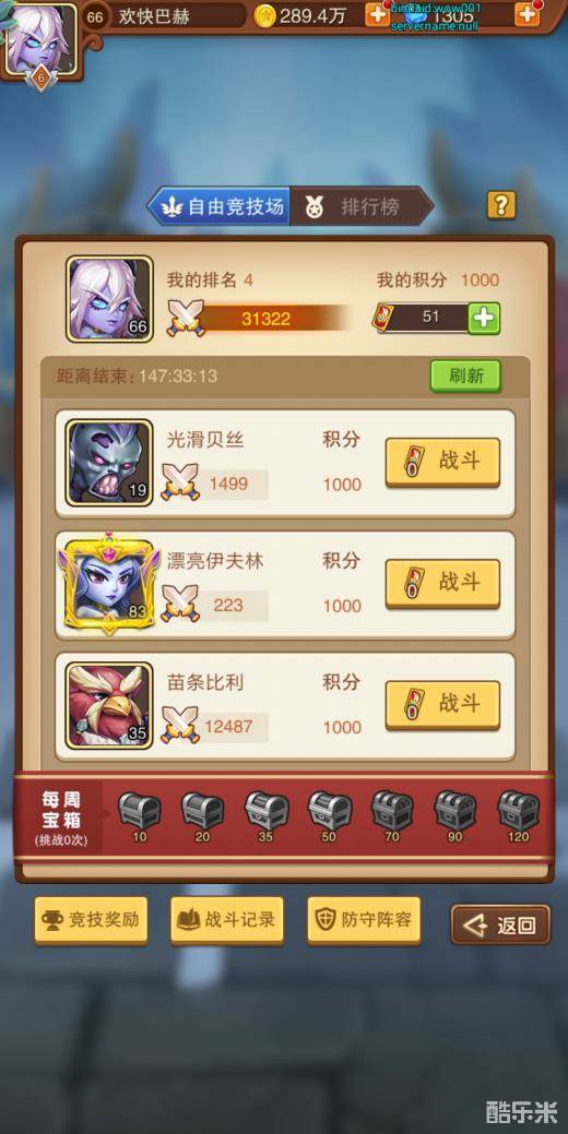 通过随机刷新不同玩家进行挑战,每次挑战需要花费1张“竞技挑战券”(可钻石购买),挑战战力越高,获胜后获得更高的积分奖励;挑战失败后,会减少一定的积分。