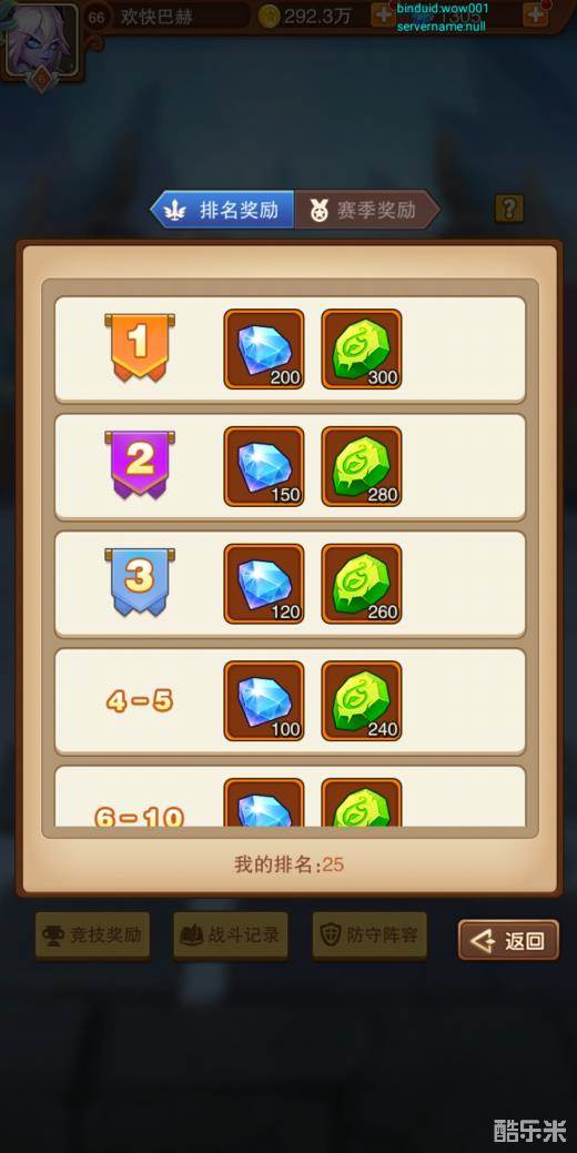 排名奖励:每日21点计算当前排名,发放排名奖励。