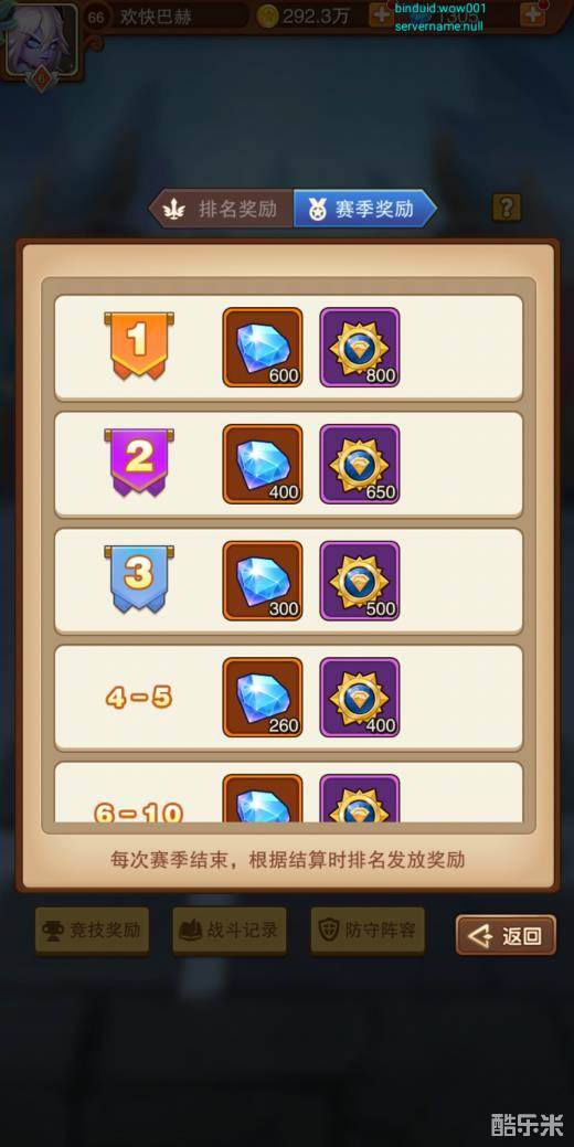 赛季奖励:每周日22点计算当前排名,发放排名奖励。