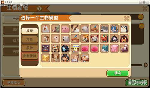 选择这个选项,就可以利用已有的自定义装扮来做一个新的生物模型: