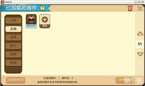 首先我们必须要已经解锁了白马王子头部装饰和相关的衣服,进入插件库,创建一个新生物插件: