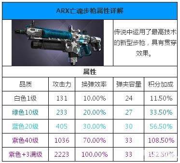 最后编辑于6年前独立防线ARX亡魂步枪属性解析,ARX亡魂步枪作为游游戏里面最厉害的突击步枪,传说中运用了最高技术的新型步枪,具有贯穿效果。小编我曾经试过去打单个敌人,那个音效以及感觉真的是棒极了。