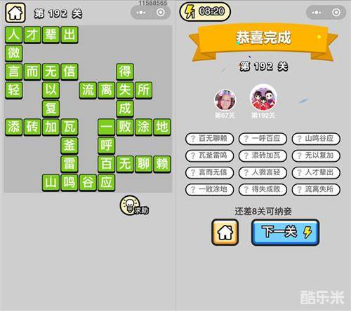《成语升官记》举人第192关的整个关卡稍微是有点难度的,小编在通关的过程中还是耗费了一定的时间的,下面就是小编为了节省大家时间准备的答案,有需要的可以参考!