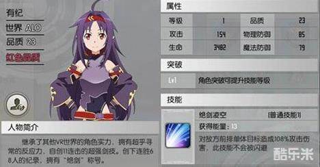 刀剑神域黑衣剑士有纪品质如何 有纪属性详解