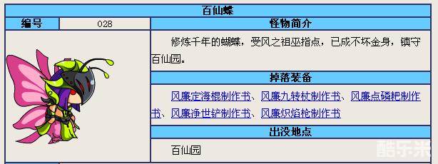 百仙园中的百仙蝶掉落风廉武器制作书,可以用于制作风廉系列的武器装备哦。