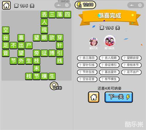 《成语升官记》探花第196关涉及到的成语虽然不是什么难的,但是想要在那么多的汉子中一眼就招到相关联的成语还是比较难得,下面就是小编为大家整理好的答案,大家直接参考即可!