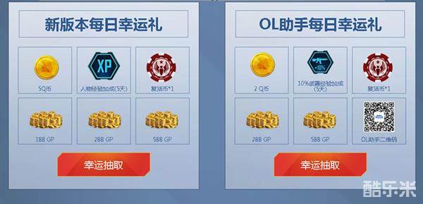活动期间,每天登录游戏,即可获得1次每日幸运礼抽取机会,每个QQ每天获得1次抽取机会。 登录ol助手,还可以每天进行1次助手专抽
