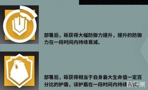技能1:部署后,砾获得大幅防御力提升,提升的防御力子啊一段时间内持续衰减。