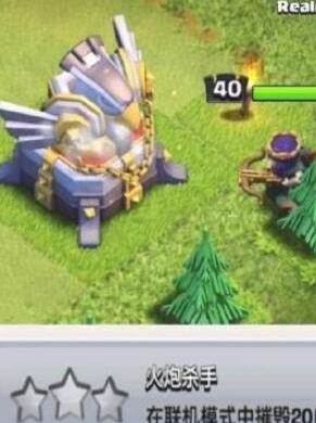 天鹰火炮的威力相信大家也是知道的,是十一本十二本防御的核心所在!而要接触到这个层面,至少也要十本才行,这样才有很大机会碰到拥有天鹰火炮的十一本!而火炮杀手这个任务就是要摧毁天鹰火炮,一级星20次,两星200次,三星2000次!也就意味着总共要摧毁2220次天鹰火炮。难度比攻城拔寨有难了几个等次。