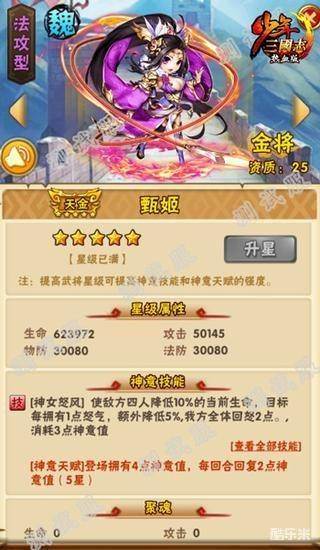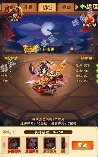 天金将的养成方式也于以往不同,可以通过消耗自身碎片提升星级,星级提高可以增加属性以及增强技能。此外,天金将还可通过“聚魂”自己阵营的红将、橙将碎片提升属性,玩家的资源利用率也将得到提升。