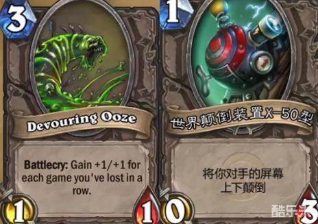 在早期炉石卡包之中还出现过一些神奇的设计,比如说吞噬软泥怪这类根据连胜场数来获得增强的卡牌,其效果为根据你的连跪场数获得+1+1的增强。