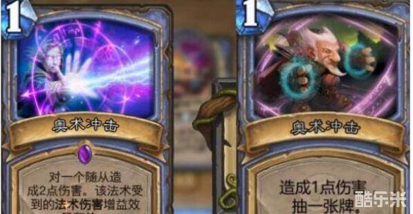 而提到毒刃的故事,就不得不提及“奥术冲击”这张卡,原本它的效果才是毒刃的前身,但是由于后期职业特色的考虑,官 方果断将这张法术给了盗贼。不过令人意外的是在两年后冠军试炼包中,炉石设计师推出一张同名紫卡“奥术冲击”。从某个角度来看也似乎向玩家表示,某些设计废卡将会在新版本中回归。