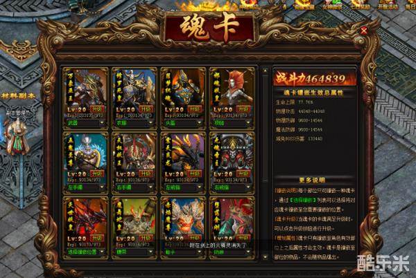 龙之霸业特有的魂卡系统,击杀特地的BOSS后可获得魂卡经验,消耗魂卡经验可以激活魂卡。