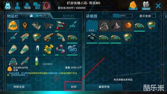 二、分解琥珀:琥珀可以在研磨器(6级解锁)或者工业研磨机(64级解锁)中进行分解,分解可以获得强效灰尘,每个琥珀可以分解获得2个强效灰尘,具体操作如下: