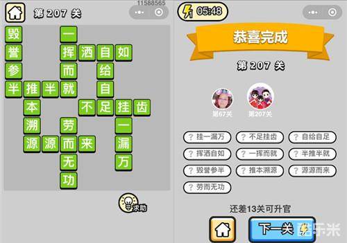 《成语升官记》探花第207关中有新的不是很熟的成语,也有之前关卡涉及过的成语,所以这一关不仅考大家的词汇量还考大家的记忆力,下面就是小编为大家整理的第207关所涉及到的所有成语!