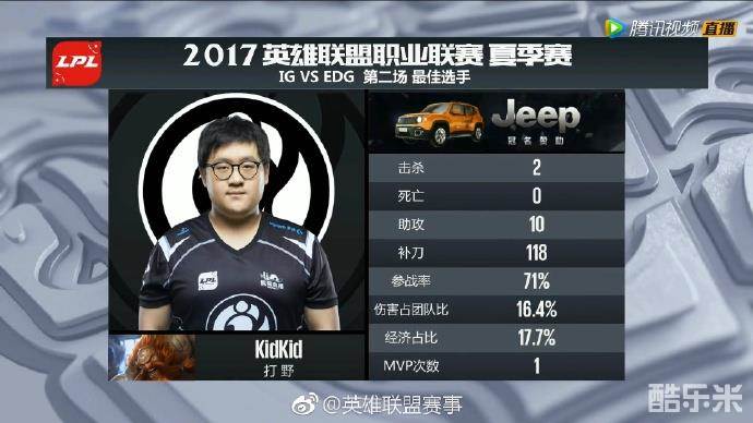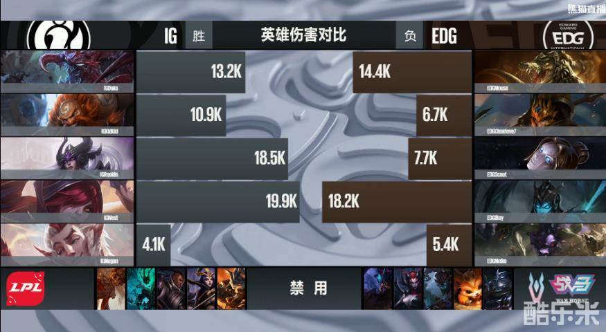 携带着大龙buff,IG从上路推进开团,并在高地处将EDG团灭并推掉其基地,拿下了今日比赛的胜利,恭喜IG!
