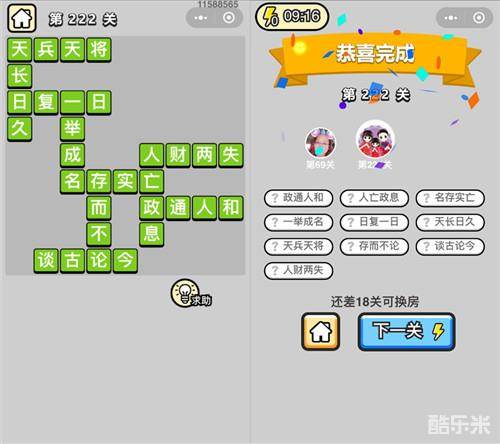 《成语升官记》榜眼第222关整个关卡看起来十分的简单,但是涉及到的成语还是有复杂的,为了不让这一关给大家造成困扰,小编为大家整理了一下这一关涉及到的成语!