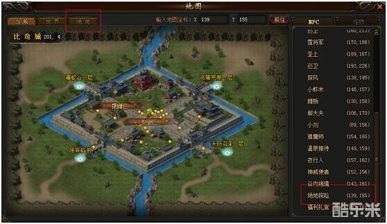 在比奇城中,隐藏着一位去过绝地的强大冒险者,在他的口中,能够获得关于“绝地”的信息。
