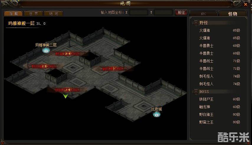 玛雅神殿是BOSS的乐园,里面藏有众多的BOSS和宝物。