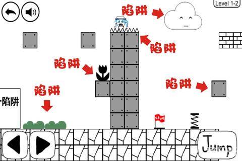 1、开启开关之后迅速后退,指示牌落下之后跳至上方,行进至最右,顶出隐藏砖块跳过草丛之后,直接跳上“?砖块”(顶出花的话吃掉必死),走到“?砖块”左沿顶出隐藏砖块,跳过高台(踩上高台会出现地刺必死)。