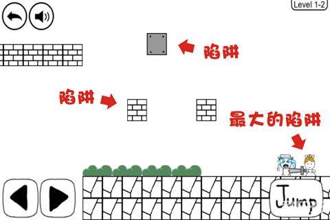 3、这里下方的两块砖块会在你下落的一瞬间分开,你需要先预判好砖块分开的位置与自己的下落点。安稳落下之后注意千万不要继续跳跃,这里有个隐藏砖块需要先顶出跃上砖块下至地面。