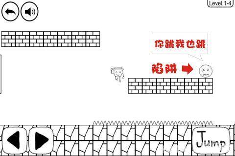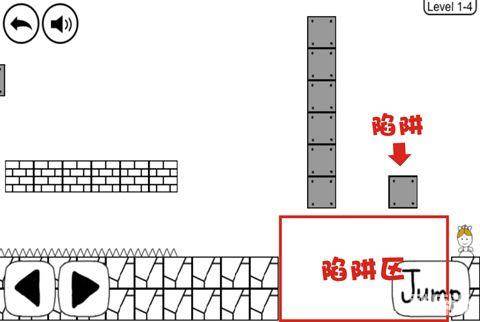 2、来到下方的平台,会出现怪物,在平台最左砖块起跳,顶出隐藏砖块,跳上去,躲避怪物。