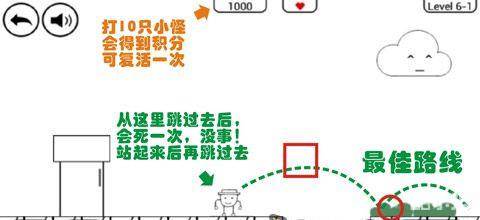 来到管道右边,射杀10只小怪,直到出现红心标志(奖励复活一次),之后跳至对面。注意这里的虚线方框是陷阱,千万不要将其顶出。