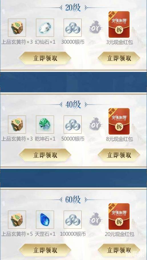 3.等级礼包,可选择道具或红包奖励,每档奖励限参与1次,现金红包数量有限,先到先得