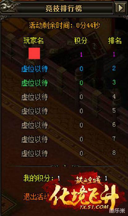 51《铁血皇城》竞技活动场地每10秒增加1点竞技积分,还有大量的魂珠碎片和灵力值,积分前八名可获得大量足迹材料。活动结束后第一名邮件奖励:竞技令牌,返回技裁判NPC选择“击杀至尊BOSS”有机会掉12转装备哦!