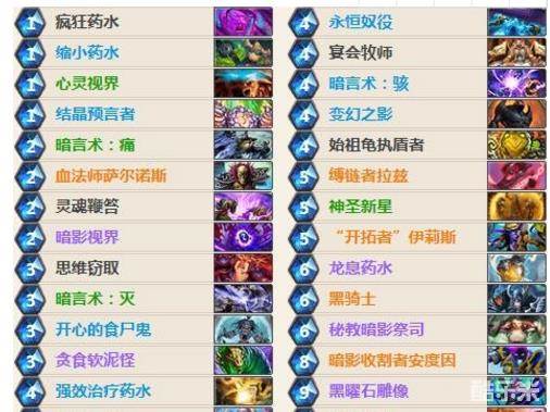 另外不过不得不说,新版本的牧师DK卡真的好强,尤其是通过缚链者减费技能后,使牧师的进攻性得到了大幅提升,配合低费手牌常常能让我们一回合打出10点以上的高爆发伤害。更恐怖的是擅长”借“东西的牧师是永远不会缺牌的,我们的进攻伤害可以说是高爆发长持续的。