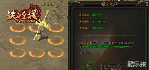 城主之刃是51《铁血皇城》出的活动之一,城主之刃四周一共有八枚光圈,站在光圈之上的玩家可以获得灵石精华与绑定元宝,每十秒获得一次奖励。奖励丰厚所以经常会引发"血案"!