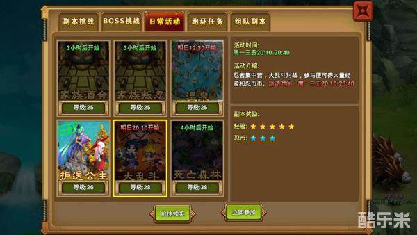 1、大乱斗是类似于战场的玩法,每周一三五晚上八点十分开始,40分钟一局。