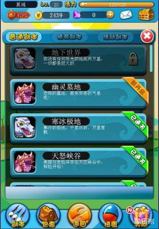 游戏剧情随着普通副本进度的推进而展开,从“新生挑战”开始,玩家便开启了萌宠世界之旅。从普通副本中,玩家可以获得大量经验、以及金钱和喂养宠物的食物,此外也会获得一些低星的宠物。每进一次副本,需要消耗玩家6点体力,相对来说还是挺少的,玩家主要是靠普通副本来进行升级。