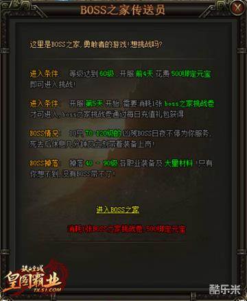 一:BOSS之家是一个初级装备获得的好去处。