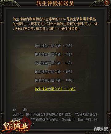 四:当你的等级达到100级,可以转身时,你也可以进入转身神殿挑战自己的转身BOSS