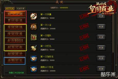 51《铁血皇城》成就系统是游戏中非常重要的一个玩法,很多大R们在商店里搞定的事情,小R们可以尝试在成就系统中弥补差距。在进入51《铁血皇城》之后,成就系统不仅给与玩家额外的奖励,还能作为一个指向标,带领玩家打怪升级完任务!
