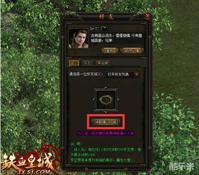 铁血皇城结义系统,铁血皇城结义介绍。古有高山流水,惺惺相惜,今有皇城英豪,兄弟结义,系统赋予你兄弟之间的友情和情义之证。