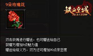3、玫瑰花分为3种,第1种9朵,获赠方可加9点魅力值