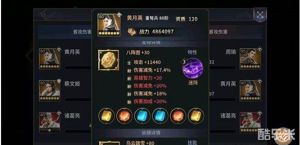 因为我的诸葛只有一星输出非常低,所以把八卦给黄月英,带上抵抗马跟灵动,每回合稳定吸4次
