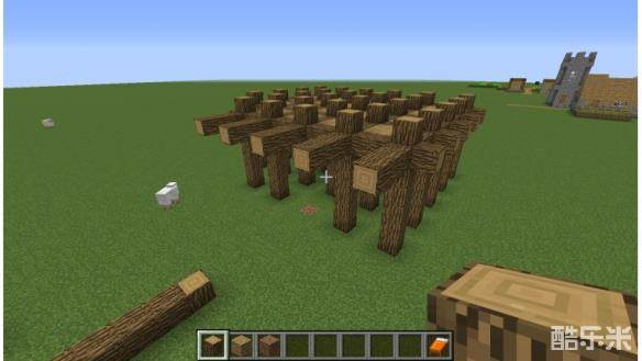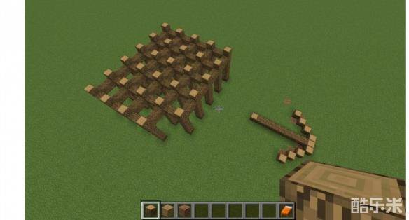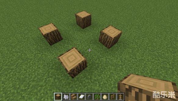 1首先,我们在地下放好四个橡木,断面朝上,每两个橡木中间间隔2个方块。