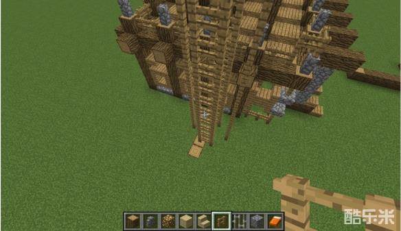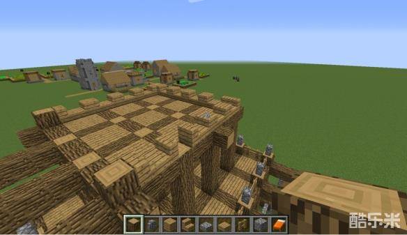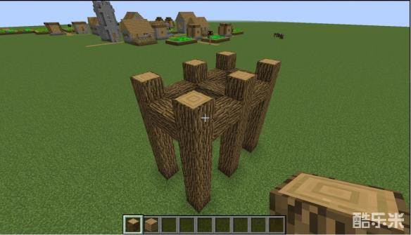 2我们将橡木向上延伸,依旧断面朝上,使其高度为7个方块,并用橡木在第六格高位置连接每两个柱子。建筑书籍中有记载这是欧式建筑的最常用基本框架之一哦,各位小伙伴在试图自己设计建筑时可以用这个基础单元拼接呢!