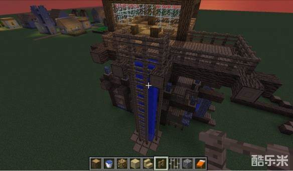 16最后一个建筑部分:水电梯,我们如图用栅栏搭建电梯框架,注意拐角处不要堵死哦。