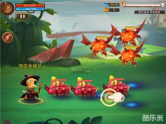 游戏中的四名角色榴莲武士、玫瑰弓手、洋葱女巫、玉米法师,原型都是生活中的美食,为了拯救被诅咒的世界,化身勇士对抗邪恶,勇士们都是萌萌哒的造型,英勇却不失可爱;在角色到达10级后,便可开启萌宠功能,这时候系统会赠送一个豌豆小飞机,可以回血,随着登记的提高,还可收集更多强力的萌宠,协助作战。