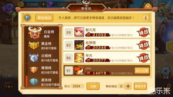竞技场分为黑铁至白金5个榜位,各榜名列前茅的玩家可选择“晋级挑战”,战胜试炼官后可进入高一级的榜位。自古英雄出少年,萌神战记内侧时,主榜排名几次易主,勇士们对待PK这事儿还真是蛮拼的。大家可以在游戏中点击上方的排行榜即可实时查看目前战斗力排名,等级排名,宠物排名等。