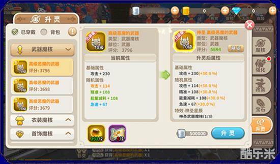 ■70级及以上的金色魔核可以通过升灵系统变成神圣魔核