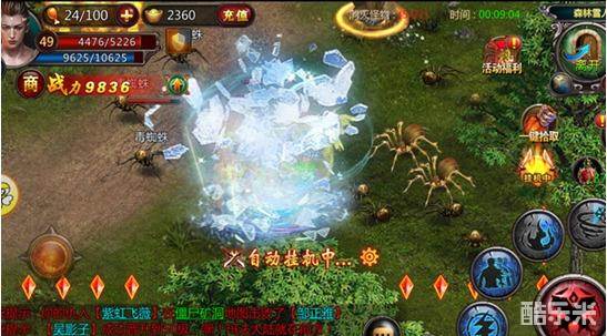 副本中共有三种怪物:小蜘蛛、大蜘蛛、森林雪人BOSS,两拨蜘蛛在上方和右边,BOSS在中间,如果挂机状态下无论冲去哪个位置都必死无疑,所以先吸引上方蜘蛛下来,跑动中打败蜘蛛,在打击过程中也要记得吃药加血,不然面对猛烈群殴真心抗不住。