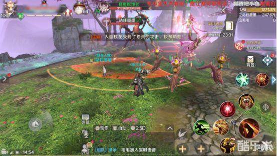 打人面桃花的时候同样是让妖兽吸引仇恨,然后队友在远处进行输出。