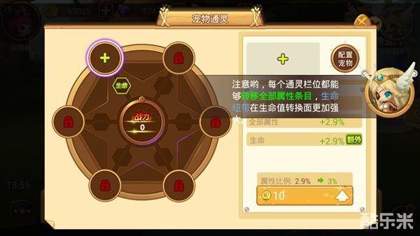 玩家在19级后开启宠物通灵,该设定能够把宠物身上的属性按比例加成给玩家,可提升其战力。通灵共有六个槽位,第一个开启的是生命纽带,选择相应宠物进行生命加成即可。随着等级的提升,消耗一定的游戏币可提升其加成比例。当然啦,宠物通灵是不会影响宠物出战和助战的哦,大家可以放心地选~放心地战~