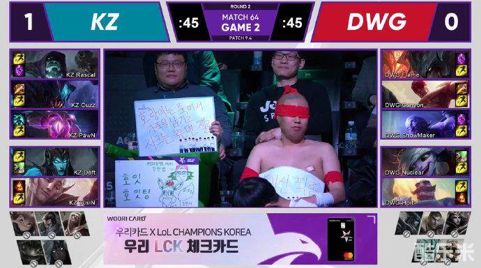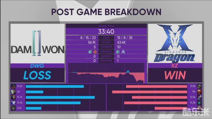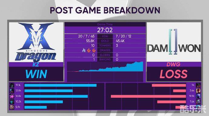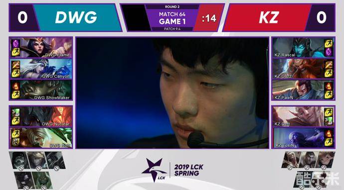 手握大龙buff,KZ两路推进,洛先手开到妖姬,随后将妖姬击杀,推下上中高地,但无奈经济差距太大,DWG憾负首局。